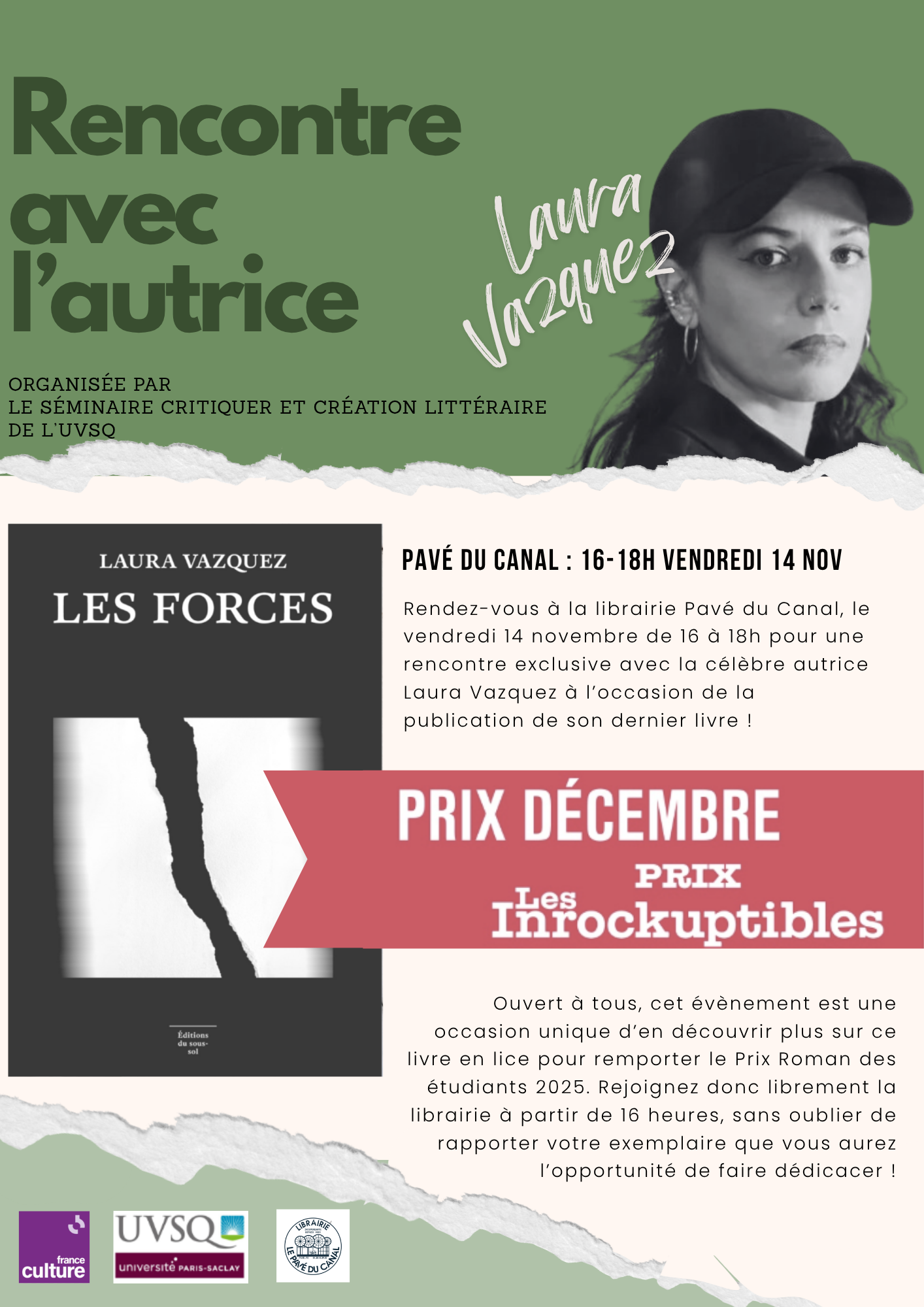 Les étudiant·es du master RCL de l'IECI ont le plaisir d'organiser une rencontre avec l’autrice Laura Vazquez, autour de son roman Les Forces.